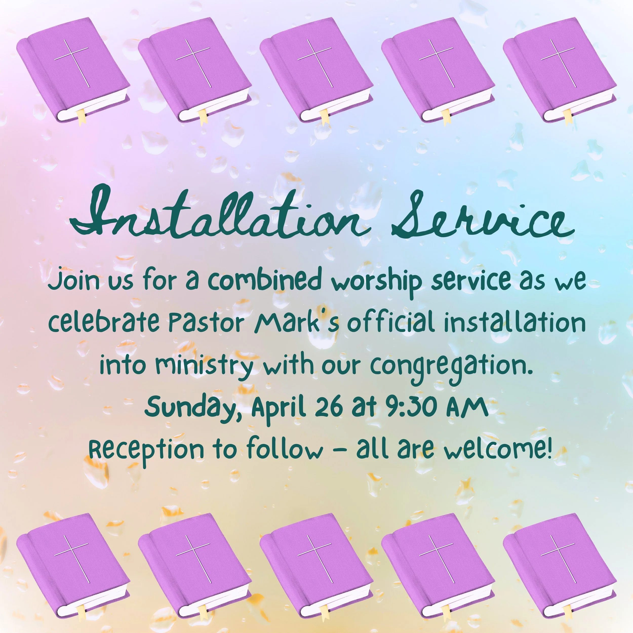 Sunday, April 26th @ 9:30AM – Pastor Mark’s installation service. Combined service.