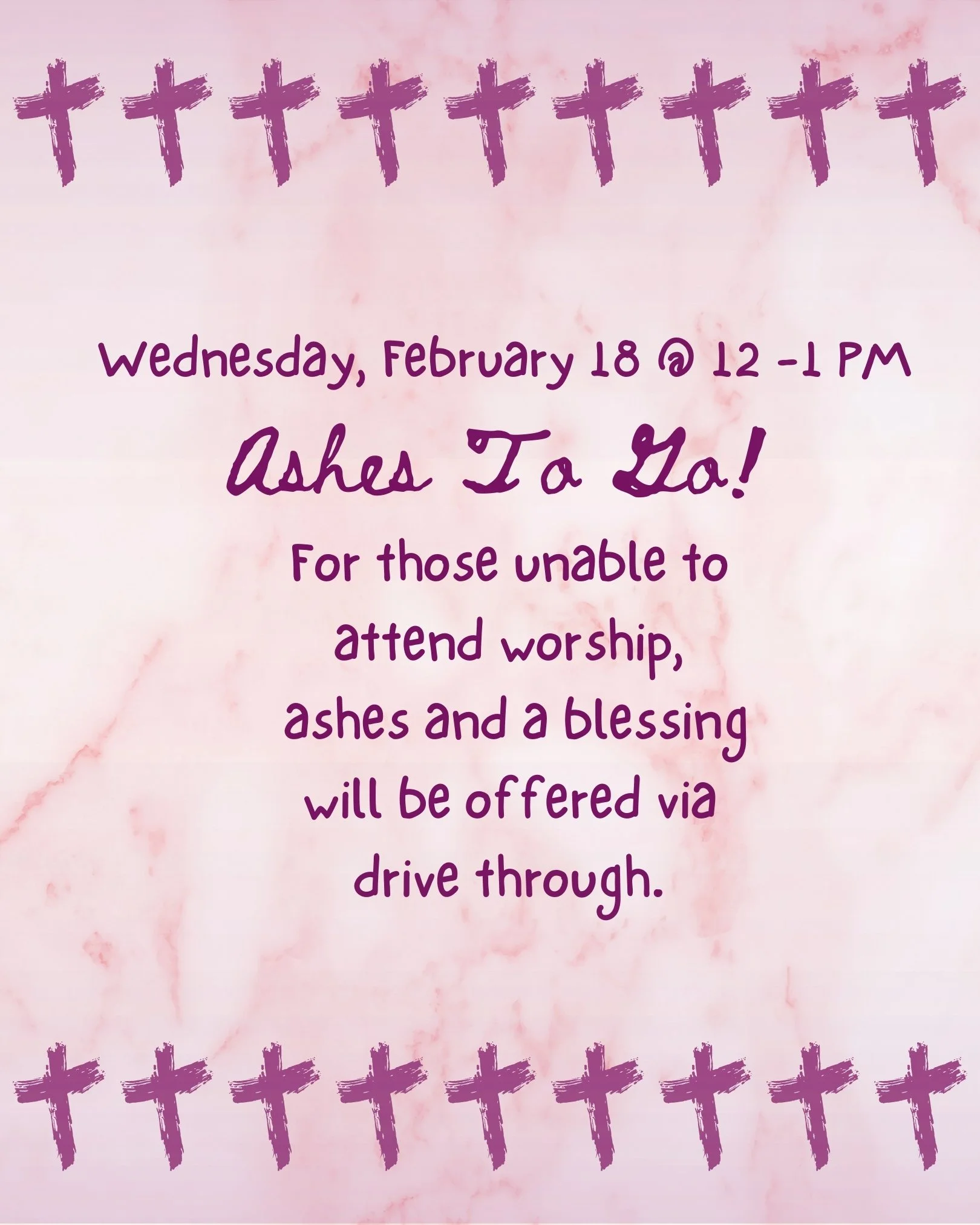 Wednesday, February 18 @ 12PM – Ashes To Go drive-thru event