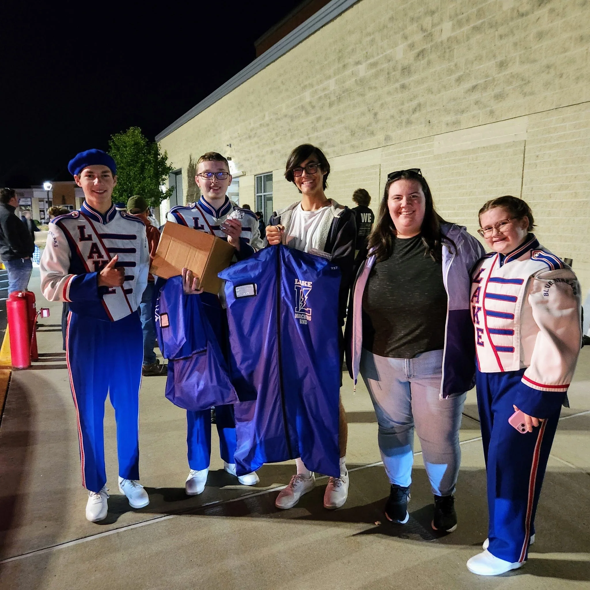 Find us in the Lake community, showcasing our talents on the field in marching band or on the stage and in the tech booth of Lake High School performances.